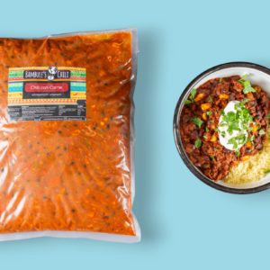 Die vegane Variante unseres Klassikers. Den Mais haben wir einige Wochen nach Verkaufsstart weggelassen, weil wir den Unterschied in den Chilistuben selbst nur noch mit großer Mühe schmecken konnten. Prophylaxe für eine Verwechslung quasi.